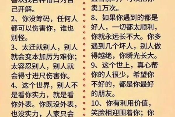 总之,人情寡淡的人在命理上有着独特的性格特征,他们在情感表达方面或许不如他人热情,但这并不妨碍他们拥有深厚的人际关系和美好的人生。通过持续的自我反思与实践,他们完全可以在生活中找到平衡,变得更加开朗和积极。在人与人之间的关系中,情感的温度,往往能够成为最美好的连接。让我们一起努力,去理解和接纳每一个独特的个体,在生活的长河中,携手共进。