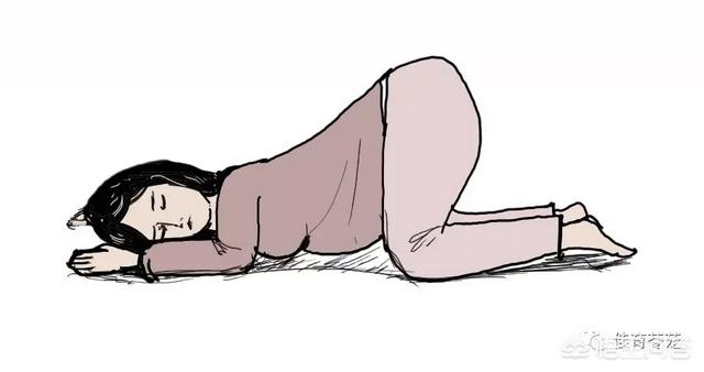 就像这样的姿势趴着,叫“膝胸卧位”,目的是让宝宝臀部退出盆腔,借助重心的改变,让宝宝的头和背部形成的弧形顺着子宫底弧面滑下来;
