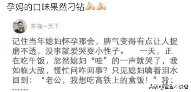 首先,要符合自己的口味。口味不对,面对再好的食物也没有欲望,更谈不上吸收。而孕妇的口味总是多变的,很多准爸爸就表示,“自从怀了孕,老婆的口味就变得刁钻起来”,总是令他们琢磨不透。
